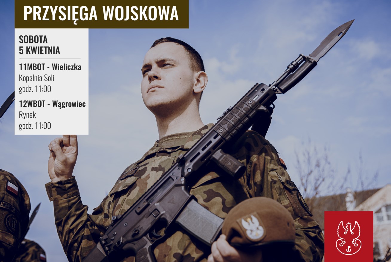 Po raz pierwszy na terenie Kopalni Soli Wieliczka (plac przy budynku warzelni soli) odbędzie się uroczysta przysięga wojskowa 75 nowych żołnierzy, którzy dołączą do 11 Małopolskiej Brygady Obrony Terytorialnej. Uroczystość jest współorganizowana z Urzędem Miejskim w Wieliczce, Starostwem Powiatowym w Wieliczce i Kopalnią Soli Wieliczka. Oprawę muzyczną zapewni Orkiestra Reprezentacyjna WOT oraz dodatkowo Orkiestra Górnicza Kopalni Soli. Na przybyłych na to wydarzenie gości czekać będą atrakcje takie jak: prezentacja sprzętu i uzbrojenia Jednostek z Garnizonu Kraków oraz tradycyjna wojskowa grochówka.
